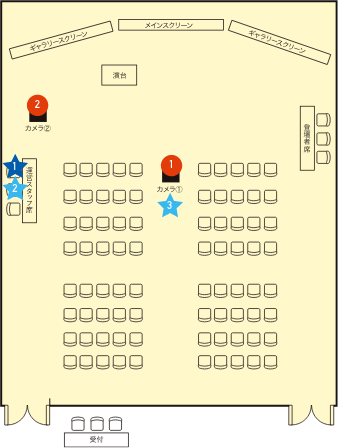 スタッフはプロが最小人数で対応します。会場担当者と設備や内容に合わせて協力し運営します。